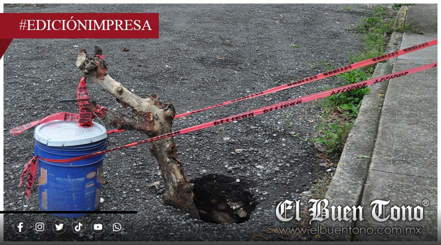 El mismo día en que se reportó el hundimiento, Protección Civil acudió para colocar una simple rama como señalamiento, sin acordonar ni realizar trabajos preventivos. Desde entonces, no han regresado ni enviado maquinaria, ni mucho menos una cuadrilla para evaluar los daños.