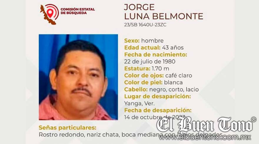 Yanga.- Familiares del taxista Jorge Luna Belmonte, de 43 años de edad y conductor de la unidad 03, solicitan el apoyo de las autoridades policiacas y la ciudadanía en general para localizarlo.