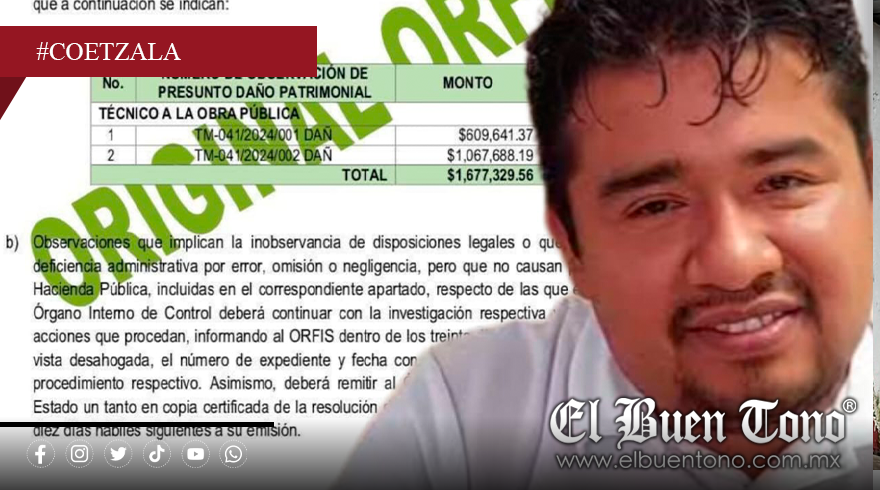 COETZALA, VER. — Más de un millón 677 mil pesos es el daño patrimonial confirmado por el Órgano de Fiscalización Superior del Estado (ORFIS) en la Cuenta Pública 2024 del municipio de Coetzala, durante la actual gestión del presidente municipal Alejandro García Hernández. Las irregularidades en obra pública no fueron solventadas, lo que confirma el desvío de recursos y la comisión de faltas graves en el manejo del dinero del pueblo.