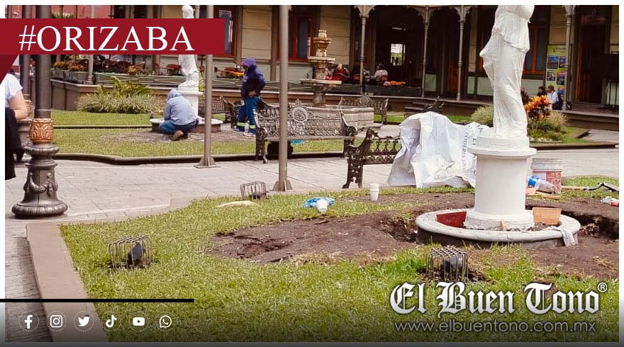 Orizaba.- Frente al icónico Palacio de Hierro, dos cráteres de cemento han reemplazado el área verde que por décadas dieron imagen y vida al corazón de esta ciudad. En su lugar, dos estatuas de yeso, se erigen como símbolo de una polémica transformación urbana impulsada por la administración del alcalde Juan Manuel Diez Francos.