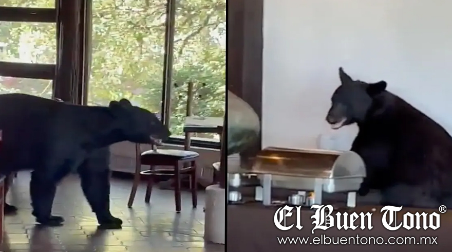 Monterrey.- Un oso ingresó hoy viernes, justo a la hora del buffet, al restaurante de un hotel en el Parque Chipinque de San Pedro, Monterrey e intento darse un festín, pero para su mala fortuna toda la comida estaba tapada.