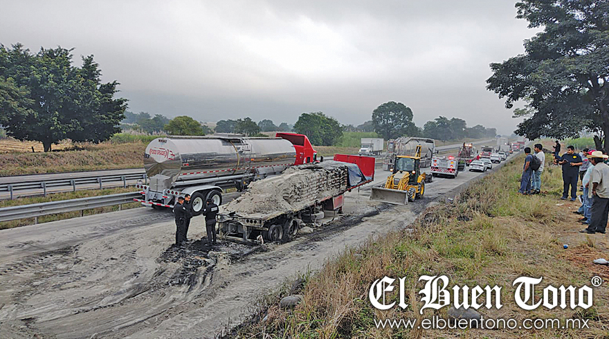 Cuitláhuac.- El conductor de un tractocamión que remolcaba una tolva, con razón social Hesa, murió luego de chocar contra un tractocamión con doble remolque tipo plataforma e incendiarse, durante la madrugada de ayer jueves en la autopista Córdoba-Veracruz, a la altura del kilómetro 10.