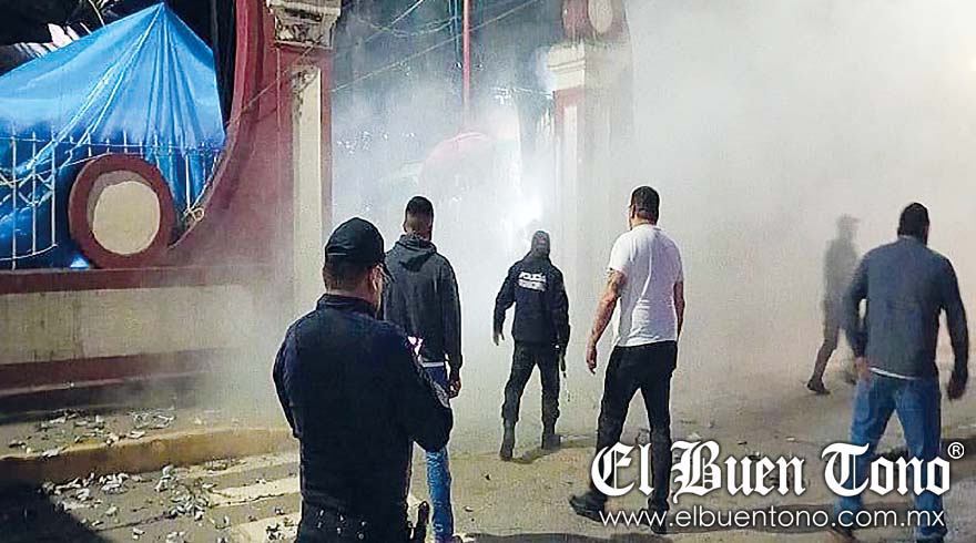 Zongolica.- Un local de venta de pirotecnia, ubicado a un costado de la iglesia San Francisco de Asís, se incendió y explotó la noche del domingo en la cabecera municipal, causando temor.