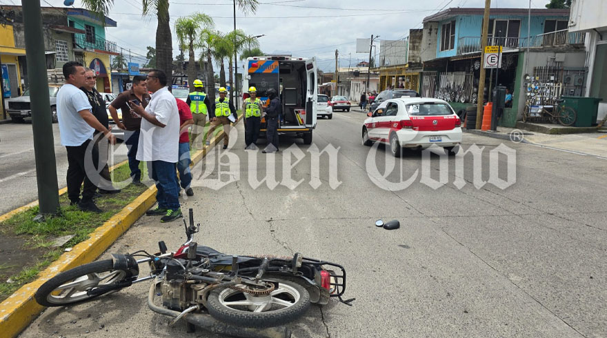 Orizaba, Ver.- Un motociclista resultó lesionado tras ser impactado por el conductor de un taxi, debido a que el ruletero invadió el carril de circulación contrario, pese a sus lesiones, el motorista pidió no ser llevado a algún hospital.