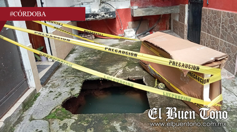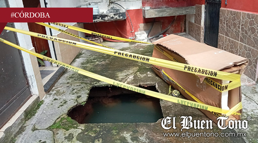 Córdoba, Ver.- Un socavón que apareció hace menos de un mes a causa de las lluvias amenaza con extenderse en una ampliación privada de la calle 8, a la altura de la avenida 2.