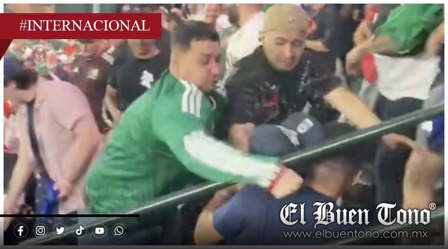 En las imágenes se observa a un hombre con playera verde de la Selección Mexicana de Futbol acercarse a otro aficionado que portaba una camiseta azul del equipo estadounidense. Tras intercambiar palabras, ambos comenzaron a golpearse, desatando una confrontación que involucró a varias personas que intentaban separarlos.