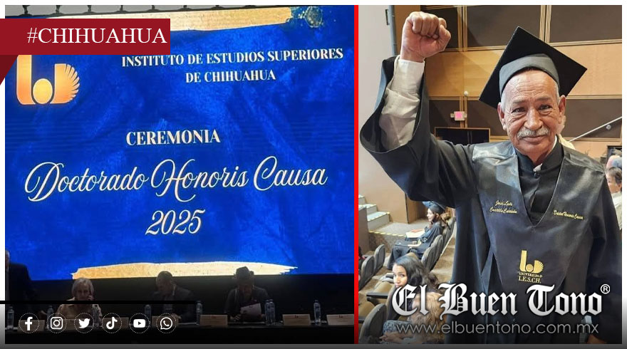 Chihuahua.- El padre de Esmeralda Castillo -desaparecida el 19 de mayo de 2009 en Ciudad Juárez-, recibió este fin de semana un Doctorado Honoris Causa por parte del Instituto de Estudios Superiores de Chihuahua, en reconocimiento a su incansable lucha por los derechos humanos y la búsqueda de su hija.