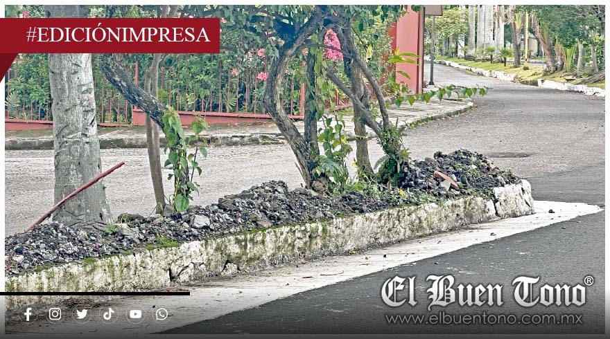 La constructora responsable, además de entregar trabajos deficientes, arrojó el escombro que retiró de las cunetas directamente sobre los camellones, destruyó áreas verdes y dejó un panorama de abandono y suciedad.