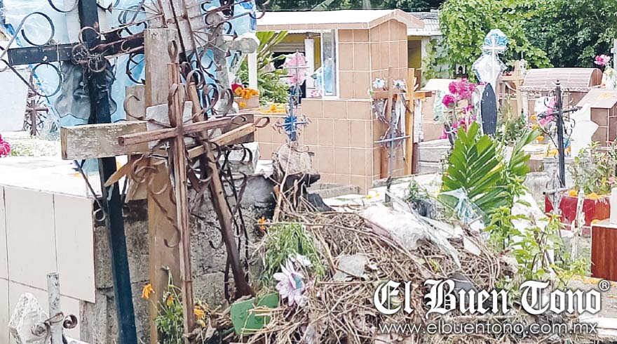 Pese a que las familias continúan acudiendo para limpiar los sepulcros y visitar a sus difuntos, no hay contenedores o botes donde verter los desperdicios, por ello se acumulan e incrementan en lugar de disminuir.