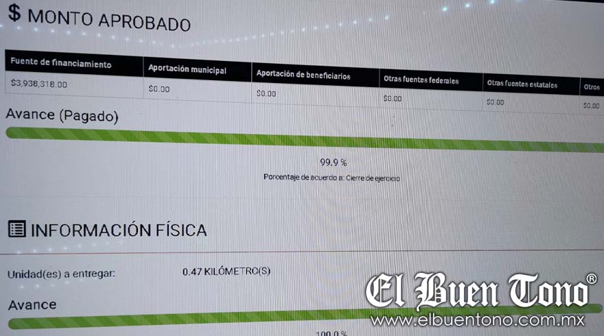 El Órgano de Fiscalización Superior del Estado de Veracruz (Orfis) señala que la obra fue ejecutada el 5 de septiembre de 2022 y debía finalizarse el 6 de diciembre del mismo año, con un monto de 3 millones 938 mil 318 pesos. Sin embargo, después de un año, esta luce en pésima calidad.