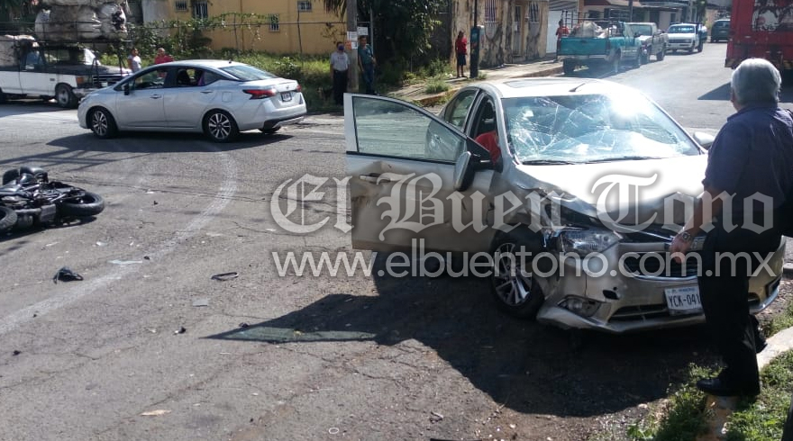 Córdoba.- Una pareja que viajaba en una motocicleta Pulsar, resultó lesionada teniendo que ser atendidos por paramédicos de Cruz Roja y trasladados al hospital, al impactarse contra un vehículo Chevrolet-Aveo, debido a que el conductor del automóvil al realizar un corte de circulación sobre la avenida 39 y calle 25 en la colonia Paraíso, interviniendo las autoridades de Tránsito Municipal.