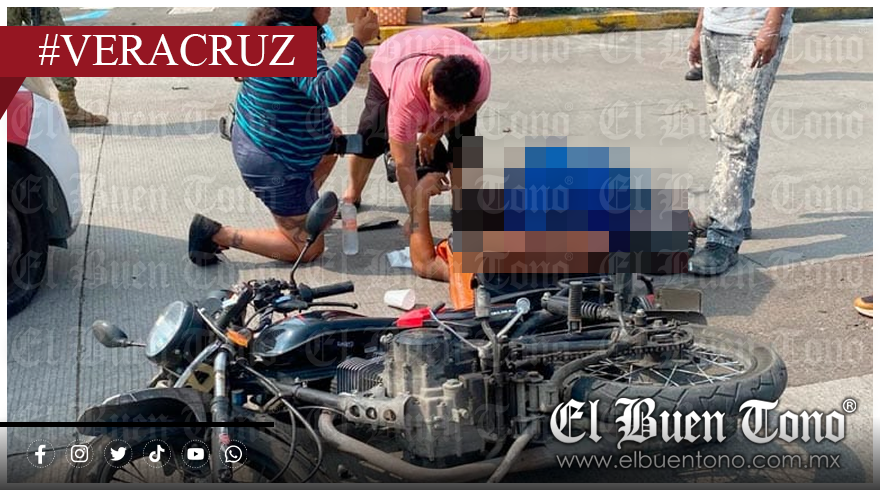 Veracruz, Ver., sábado 24 de agosto de 2025.– Una pareja de repartidores que viajaba en motocicleta resultó lesionada luego de impactarse contra un taxi en céntricas calles de la ciudad de Veracruz, lo que provocó la movilización de cuerpos de emergencia y autoridades de vialidad.