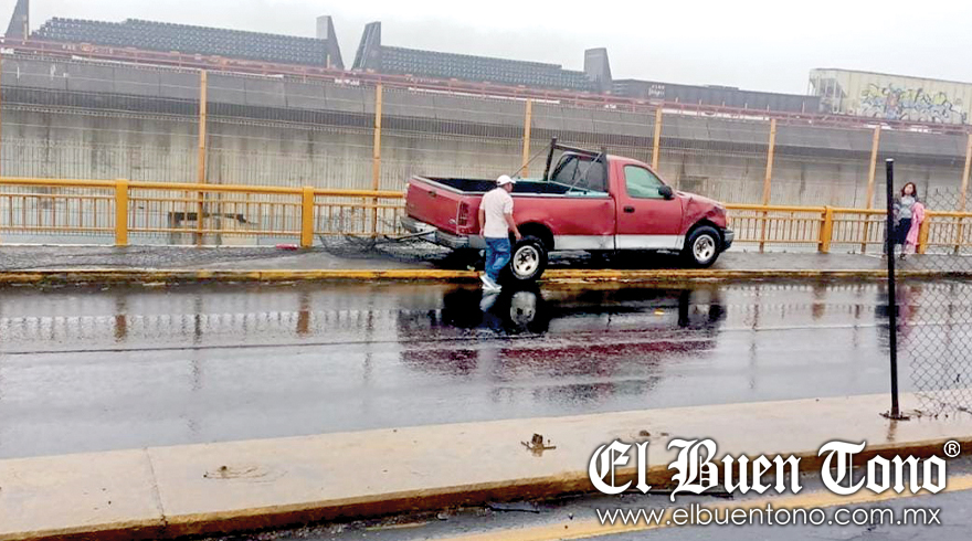 Fortín.- Una pareja de viajeros se salvó de una tragedia en el puente de Metlac, luego de que la camioneta roja en la que viajaban se estrellara contra el barandal, evitando que cayera al vacío.