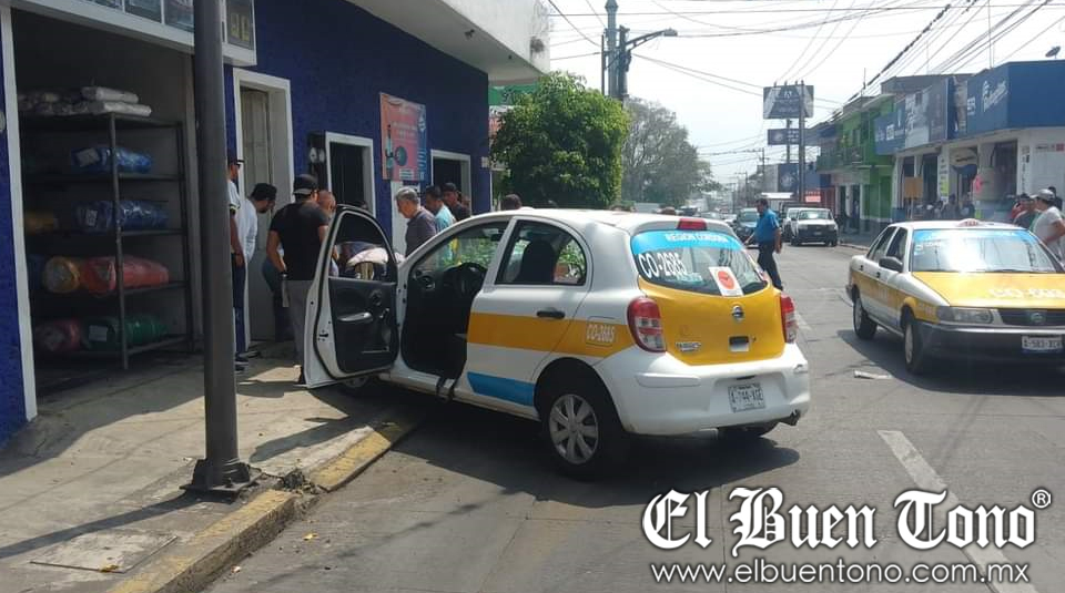 Córdoba.- Una camioneta de una tienda de autopartes provocó un choque con un taxi, el cual salió proyectado contra un árbol que derribó y cayó sobre una mujer que caminaba por la banqueta.