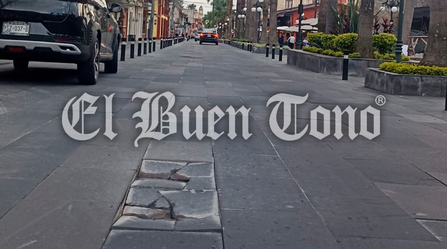 Cuatro puntos críticos muestran losas completamente destrozadas, y en otros sectores, aunque el daño es menor, las losas también están en mal estado.