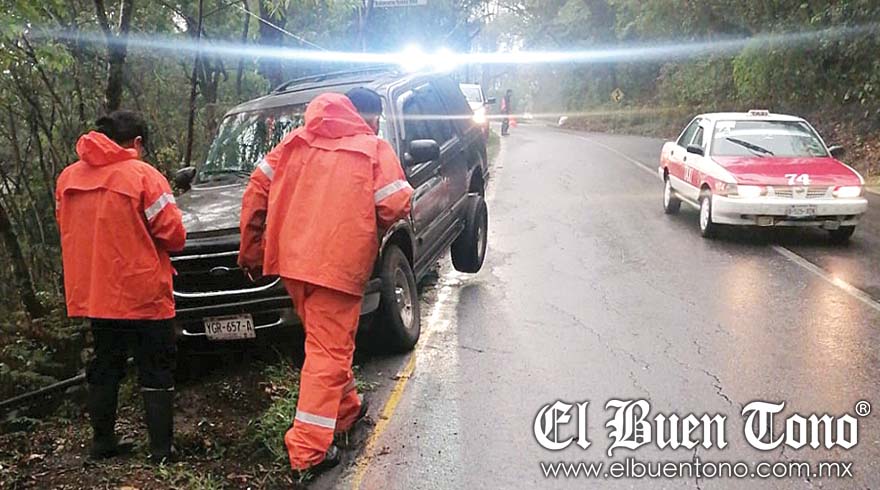 Debido a la llovizna, el pavimento estaba resbaladizo y la camioneta se salió del camino, lo que provocó daños materiales en la unidad vehicular.