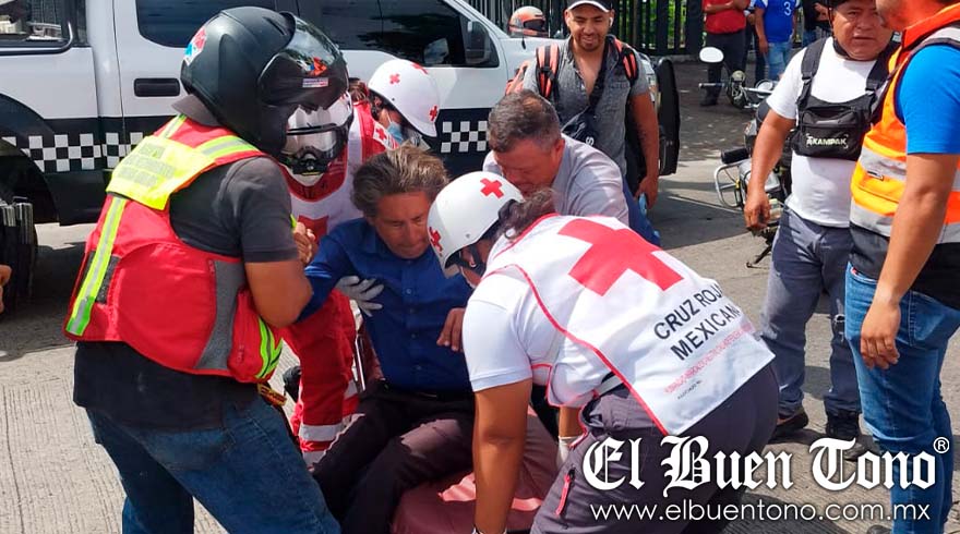 Mientras el lesionado era trasladado por paramédicos de la Cruz Roja, su motocicleta fue subida a la patrulla que provocó el accidente vehicular.