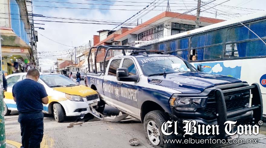 Córdoba.- Una patrulla de la Policía Municipal de Chocamán, provocó que un taxi de Córdoba chocara contra ella, al no respetar la preferencia vial en el cruce de la avenida 2 y calle 13.