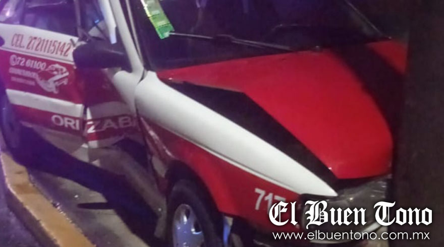 Orizaba.- Un accidente vehicular se registró la madrugada del lunes en calles céntricas de Orizaba, luego de que el conductor de un auto particular chocó contra un taxi y lo hizo impactarse contra un poste sobre la acera.