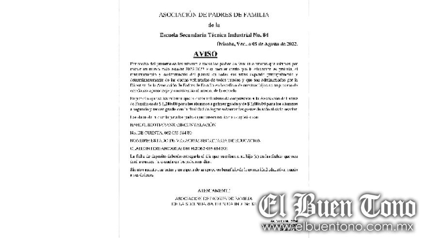 La Escuela Secundaria Técnica Industrial Número 84 público su costo de inscripción que está en mil pesos para alumnos de segundo y tercer grado; mientas que los estudiantes de nuevo ingreso deberán erogar mil 200 pesos.