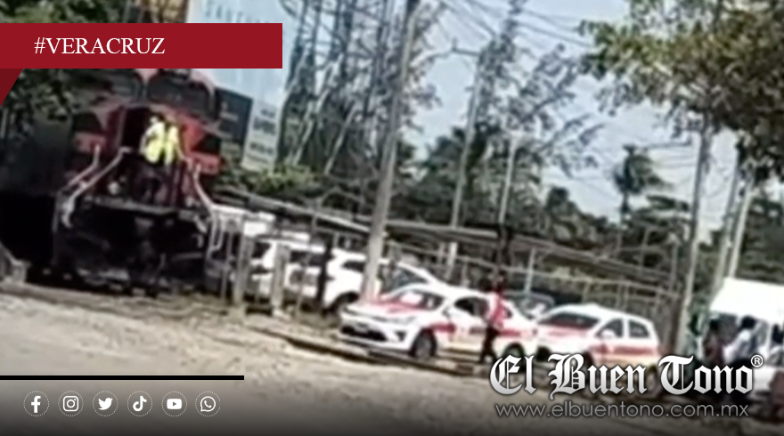 En un video que circulan en grupos de WhatsApp se puede ver como un taxi se queda atorado en las vías y es auxiliado por otros conductores, justo cuando está a punto de pasar el tren que, afortunadamente, no logró impactar la unidad y causar un daño irreparable.