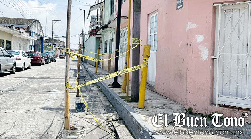 Los residentes han tenido que improvisar medidas de seguridad, colocando cubetas y cinta amarilla alrededor del área para prevenir a los transeúntes.