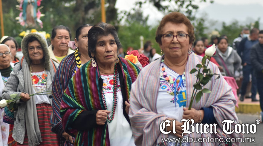 Tomatlán. – Como ya es tradición, este 12 de diciembre cientos de personas y danzantes peregrinaron por dos kilómetros, del centro del municipio para llegar a la Ermita de Tomatlán, ubicada a un costado de la carretera federal Fortín-Huatusco, donde se lleva a cabo la solemne misa, conmemorando los 492 aniversario de las apariciones de la virgen de Guadalupe.