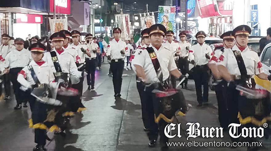 En la peregrinación destacaron las Bandas de guerra y hombres en sillas de rueda también formaron parte de la procesión, que recorrió las principales calles del centro histórico hasta concluir en el templo.