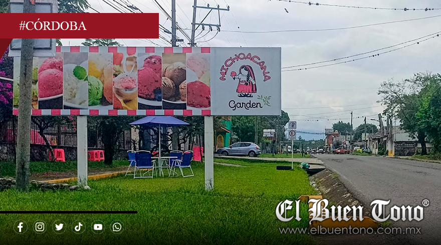 Córdoba, Ver.— En plena vía pública y sin que medie control alguno por parte de las autoridades municipales, una sucursal de conocida paletería ubicada sobre la carretera Camino Real en la zona de Palenque Palotal, invadió áreas verdes y el espacio que debería estar acondicionado para banquetas, apropiándose del espacio común para uso comercial.