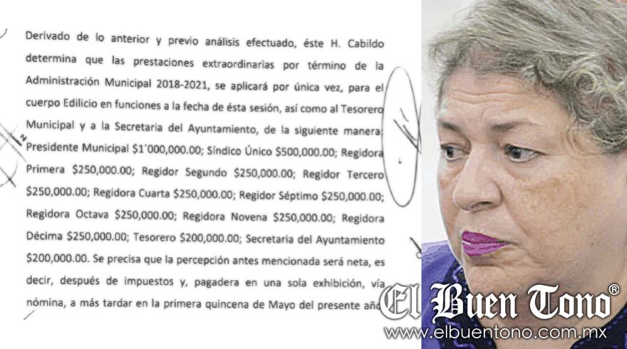 Y es que además de la ex alcaldesa, funcionarios recibieron cantidades que oscilan entre los 500 mil pesos, cifra que le fue asignada al entonces síndico José Medina Rahme, así como 250 mil pesos para cada uno de los 10 regidores.