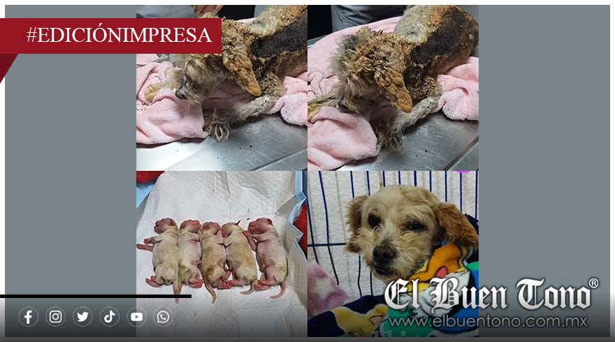 Vecinos alertaron a la organización “Huellitas, amor sin fronteras”, que acudió al rescate. La perrita estaba en estado de shock y en trabajo de parto, por lo que fue trasladada de urgencia a una clínica veterinaria, donde se le practicó una cesárea y dos cirugías más para estabilizarla. A pesar de las heridas, Cereza mostró una fuerza extraordinaria: sus cinco cachorros nacieron vivos, aunque prematuros y con bajo peso.