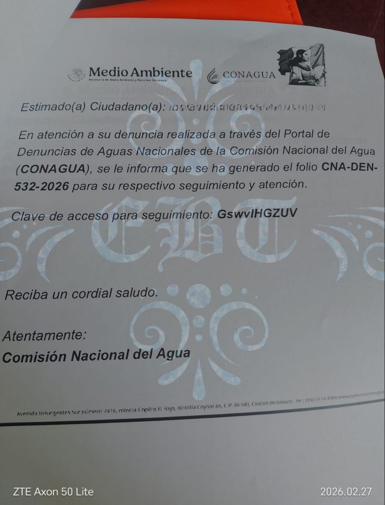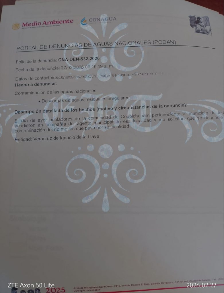 Las autoridades municipales de Fortín informaron que ya interpusieron denuncias ante la Comisión Nacional del Agua (Conagua) y otras instancias competentes. Además, aseguraron que cuentan con muestras de agua para evaluar el grado de afectación y determinar responsabilidades. Sin embargo, pese a que han transcurrido más de 40 días desde que comenzó la problemática, los resultados oficiales aún no se hacen públicos.