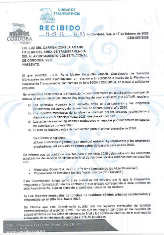 Córdoba, Ver.- El Ayuntamiento de Córdoba contradice sus propias áreas y se niega a entregar los contratos vigentes con las empresas encargadas de la disposición final de residuos, una de ellas señalada por vecinos de Nogales por presuntos daños ambientales.