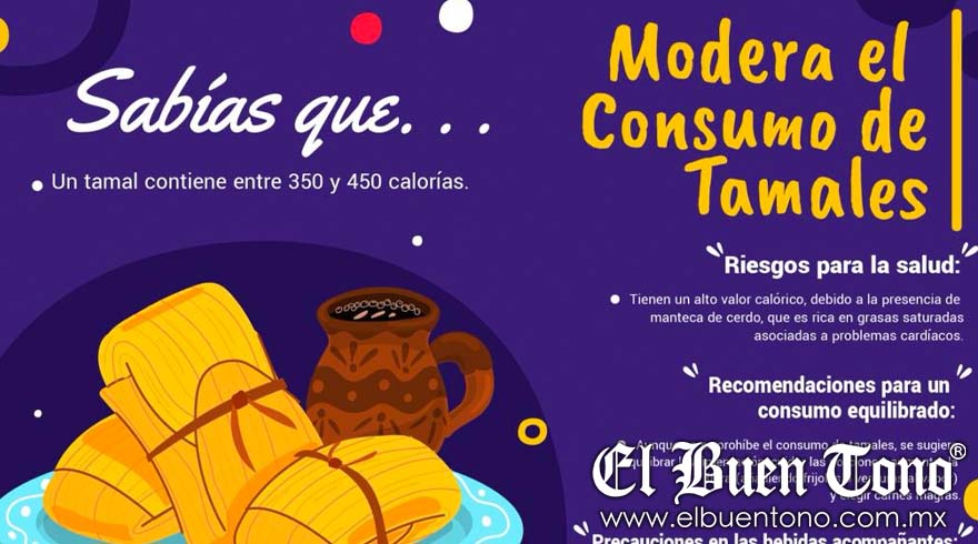El Instituto Mexicano del Seguro Social (IMSS) en Veracruz Sur exhorta a la población a no exceder el consumo de tamales en esta temporada, ya que estos cuentan con un alto valor calórico y al exceder su consumo ponen en riesgo la salud, especialmente en personas con obesidad, diabetes y presión arterial alta.