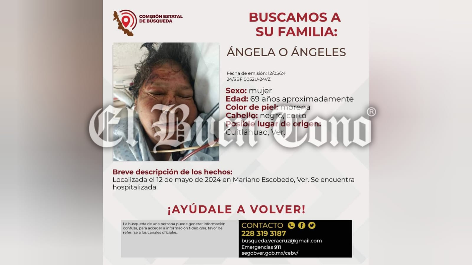 Lo único que se sabe de ella es que se puede llamar Angela o Ángeles de aproximadamente 69 años de edad.