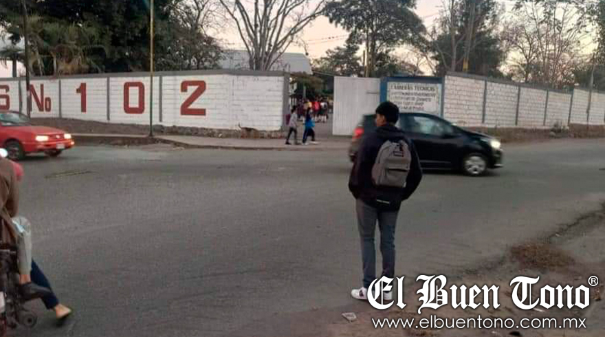 Paso del Macho.- Padres de alumnos que acuden al Centro de Bachillerato Tecnológico e Industrial y de Servicios (CBTIS) 102, exigieron mayor apoyo vial a la hora de entrada y salida de los alumnos.