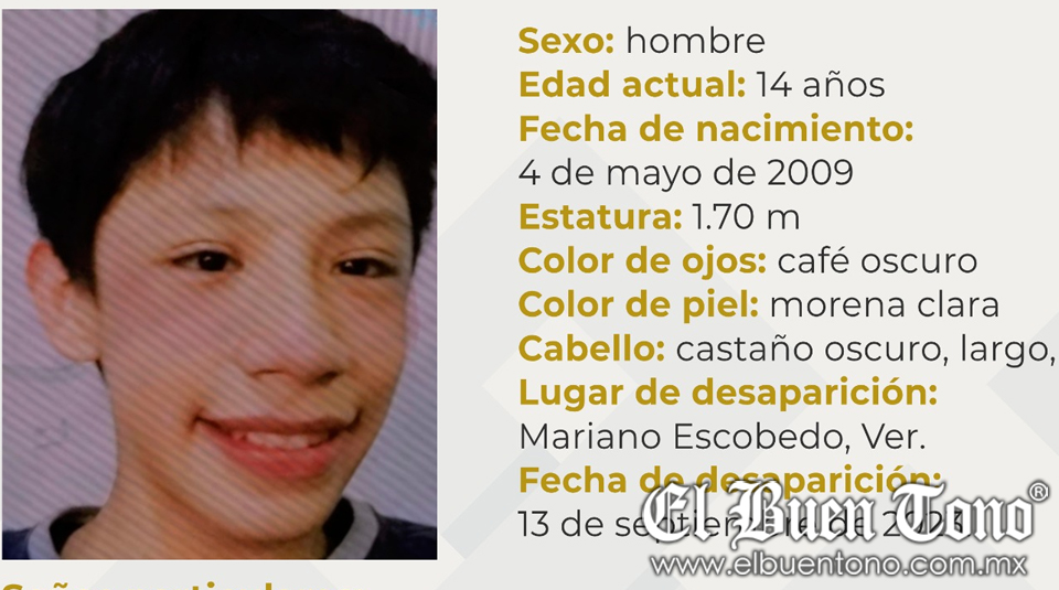 Mariano Escobedo, Ver.- Un menor de 14 años de edad, identificado como Xavier Kaleb Zepahua Monterd, se encuentra como desaparecido desde el día de ayer 13 de septiembre.