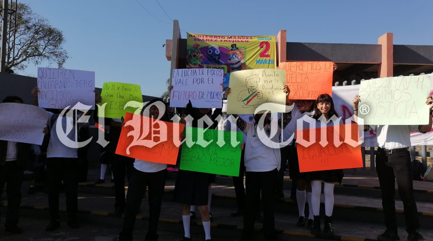 Córdoba.- Estudiantes de Bachillerato de la Escuela Secundaria Bachilleres, Artes y Oficios (ESBAO), se manifiestan de manera pacífica a las afueras del auditorio Manuel Suárez, exigiendo que la operación del inmueble regrese la operatividad a la institución educativa.