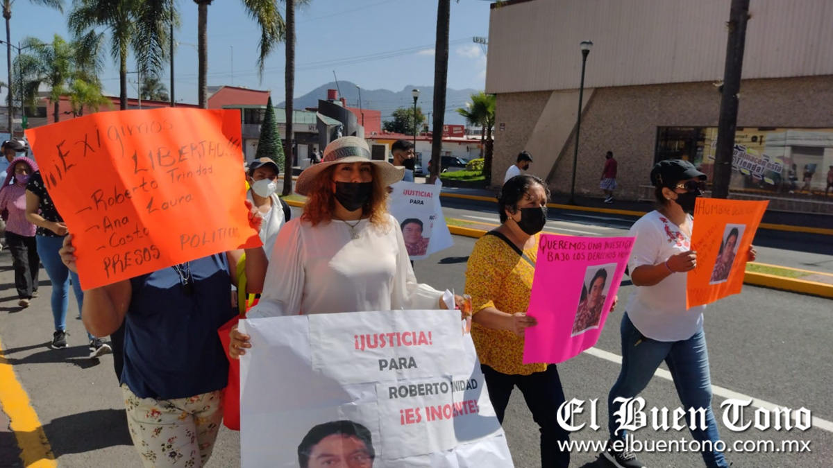 “Nos estamos reuniendo para exigir como ciudadanos la libertad de Roberto Trinidad. El día 11 del mes pasado, el compañero fue privado ilegalmente de la libertad por una supuesta vinculación al tema del asesinato de Jacinto Romero Flores. Consideramos que es ilegal su vinculación a proceso toda vez que el único elemento de prueba que presenta la Fiscalía es un mensaje: pensé que éramos amigos”, expuso uno de los inconformes.