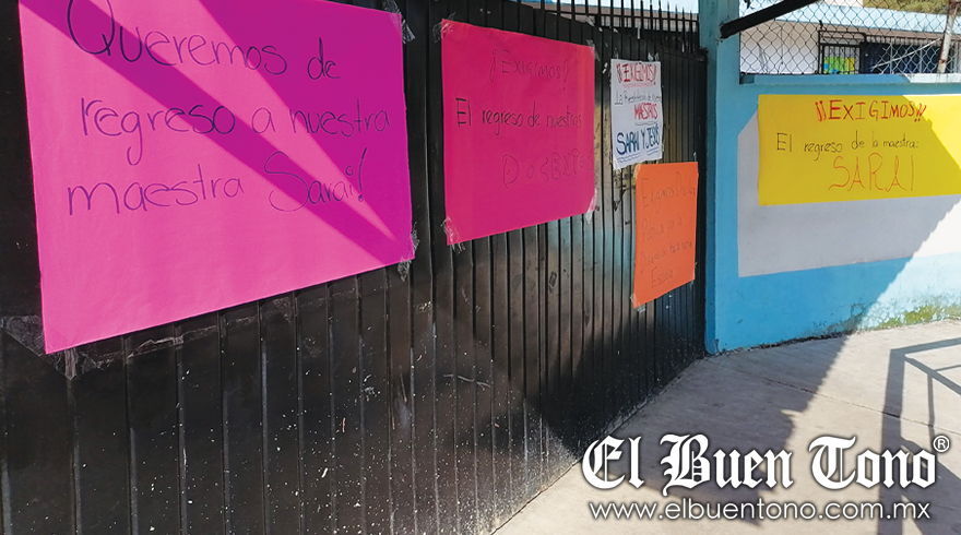 La mañana de ayer, los manifestantes y maestros demandaron la reinstalación del director y la maestra de cuarto grado, quienes fueron separados de su cargo mientras se realizan las investigaciones pertinentes.