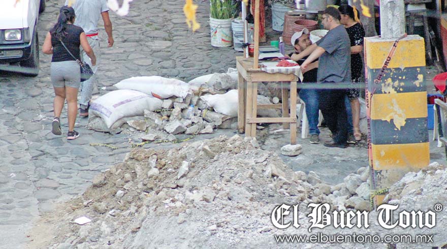 Refirieron que hace un mes, una tolva que circulaba por la zona provocó el hundimiento de la calle y por ende cerraron el paso para realizar los trabajos de relleno; sin embargo, ya se prolongaron por más de un mes y hasta el momento la tierra sigue afectando el paso.