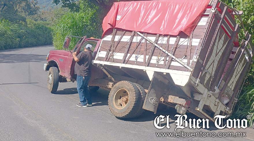 Chocamán.- Una falla en el eje trasero de una camioneta provocó que dos llantas se desprendieran, dejando al vehículo al borde de volcarse en la carretera federal Fortín-Huatusco, en la barranca de Chocamán.