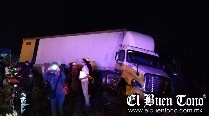 Amatlán.- Un trailero lesionado, daños materiales, movilización de los servicios de emergencia y cierre de la circulación, fue el resultado del choque y salida de camino de un tractocamión la noche de ayer martes sobre la autopista Veracruz-Córdoba, a la altura del kilómetro 295.