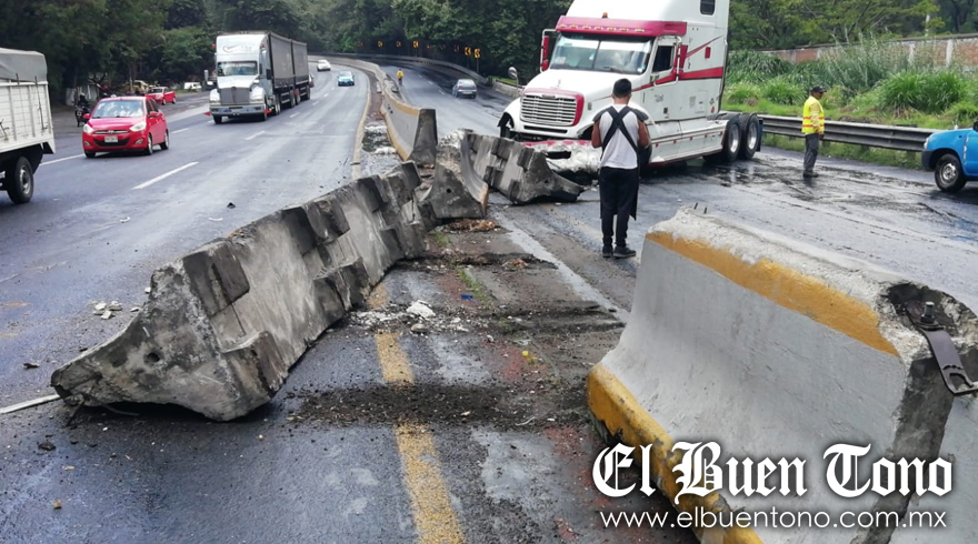 Nogales.- La falta de pericia al conducir, provocó que el chofer de un tractocamión perdiera el control del volante y se estrellara de frente contra el muro de contención que divide ambos carriles de la autopista Puebla-Córdoba.