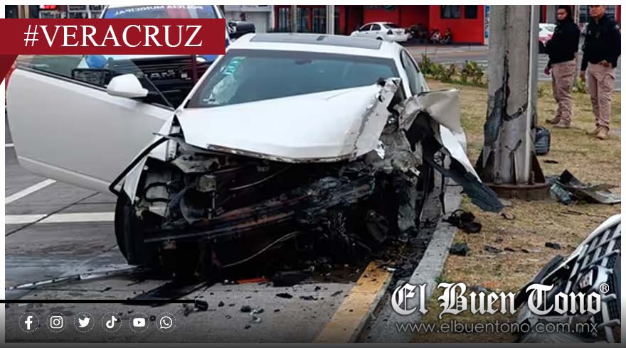 Boca del Río, Ver.- La mañana de este domingo se registró un aparatoso accidente sobre el Boulevard Adolfo Ruiz Cortines, a la altura del monumento a los Niños Héroes, en el municipio de Boca del Río, donde un automóvil de lujo terminó desbaratado tras chocar contra un poste de fierro.