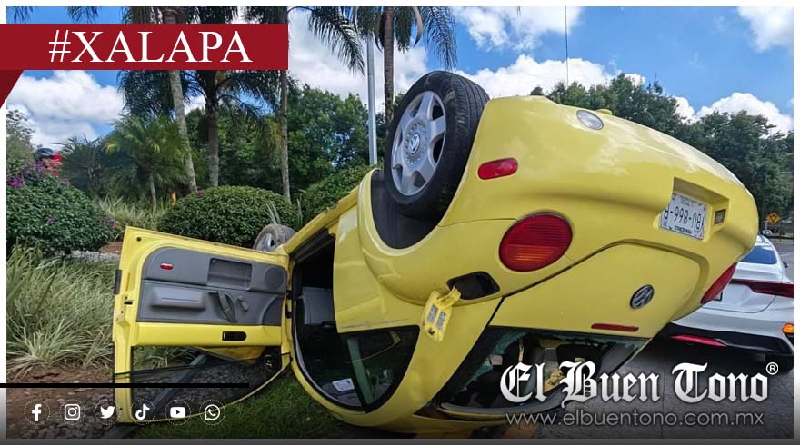 Xalapa.- Una mujer que manejaba su automóvil Beetle, terminó volcada la tarde de este martes en la calle Bolivar, frente al Velódromo de la capital del estado.