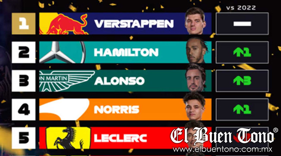 Internacional.- El piloto mexicano Sergio “Checo” Pérez finalizó la temporada 2023 de la Fórmula 1 como subcampeón, sin embargo, no logró asegurarse un lugar entre los cinco primeros en el ranking de pilotos, votación realizada por sus compañeros para reconocer a los mejores del año.