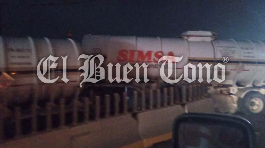 Córdoba, Ver.- Un tractocamión con doble tanque, de la razón social SIMSA, chocó contra otra unidad de carga y derribó parte del muro de concreto que divide ambos carriles.