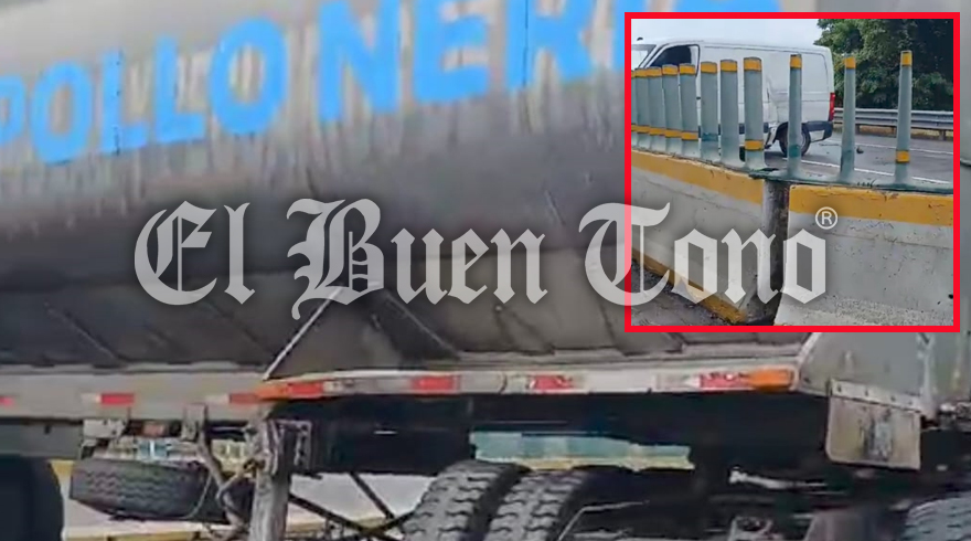 Cuitláhuac, Ver.- Una pipa con razón social Super Pollo Neria, provocó un choque contra una camioneta van y derribó parte de la barra de contención, este martes alrededor del mediodía a la altura del kilómetro 17 de la autopista Córdoba-Veracruz.