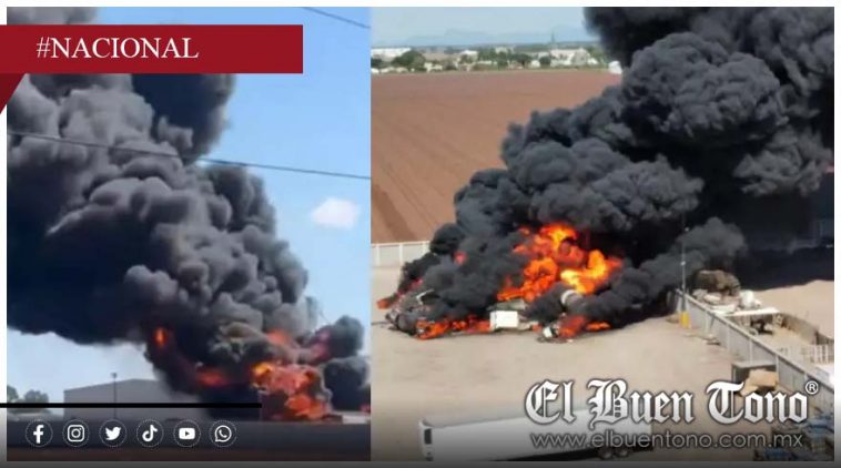 LOS MOCHIS, SINALOA.– La tarde de este 2 de octubre, un fuerte incendio se registró en el depósito conocido como La Piralica, ubicado junto a la carretera México 15 y el Libramiento Oriente, en la ciudad de Los Mochis. El fuego involucró varias pipas cargadas con gas LP y se propagó rápidamente a remolques, tráileres y vehículos estacionados en la zona.
